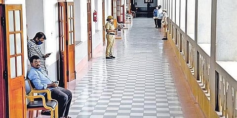 ಬೆಂಗಳೂರು: ಕಳೆದ ಮೂರು ವರ್ಷಗಳಲ್ಲಿ ಎರಡನೇ ಬಾರಿಗೆ ವಿಧಾನ ಸೌಧ ಮತ್ತು ವಿಕಾಸ ಸೌಧಗಳಲ್ಲಿನ ಸಚಿವರ ಮತ್ತು ಅವರ ಕಾರ್ಯದರ್ಶಿಗಳ ಕೊಠಡಿಗಳಿಗೆ ಬೀಗ ಹಾಕಲಾಗಿದೆ, ಸೋಮವಾರ ಎಲ್ಲಾ ಕೊಠಡಿಗಳನ್ನು ಸೀಲ್ ಮಾಡಲಾಗಿದೆ.