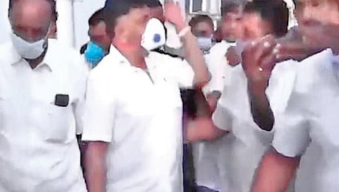 ಬೆಂಗಳೂರು: ಪಕ್ಕದಲ್ಲಿ ಬಂದು ನಿಂತ ಜೆಡಿಎಸ್ ಕಾರ್ಯಕರ್ತನಿಗೆ ಕೆಪಿಸಿಸಿ ಅಧ್ಯಕ್ಷ ಡಿ.ಕೆ.ಶಿವಕುಮಾರ್ ಥಳಿಸಿದ ವಿಡಿಯೊ ವ್ಯಾಪಕವಾಗಿ ವೈರಲ್ ಆಗುತ್ತಿದ್ದು ಈಗಾಗಲೇ ಬಿಜೆಪಿ ಟೀಕಿಸಿದೆ. ಸೋಷಿಯಲ್ ಮೀಡಿಯಾದಲ್ಲಿ ಕೂಡ ಇದು ಚರ್ಚೆಗೆ ಗ್ರಾಸವಾಗಿದೆ.