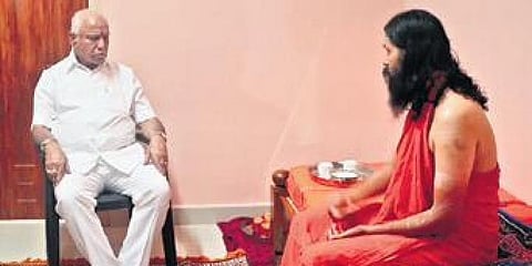 ಮೂಲಗಳ ಪ್ರಕಾರ ಶಿಕಾರಿಪುರದಲ್ಲಿದ್ದ ಯಡಿಯೂರಪ್ಪ ಅವರು ತಮ್ಮ ಹಳೆಯ ಗಳೆಯ ಮತ್ತು ಆರ್'ಎಸ್ಎಸ್ ನಾಯಕ ಅಂಗಡಿ ರಾಮಣ್ಣ ಅವರ ಮನೆಗೆ ಭೇಟಿ ನೀಡಿ, ಮಾತುಕತೆ ನಡೆಸಿದ್ದಾರೆಂದು ತಿಳಿದುಬಂದಿದೆ. ರಾಮಣ್ಣ ಅವರ ಭೇಟಿ ಬಳಿಕ ಮತ್ತೊಬ್ಬ ಕೆಳೆ. ಚಿಕ್ಕ ಜೋಯಿಸ್ ಅವರನ್ನು ಭೇಟಿ ಮಾಡಿದ್ದಾರೆ. ಕಲ್ಲೇನಹಳ್ಳಿಯಲ್ಲಿರುವ ಶ್ರೀ ಶಿವ ಯೋಗಾಶ್ರಮದ ಶ್ರೀ ಸಿದ್ದಲಿಂಗ ಮಹಾಸ್ವಾಮಿಗಳನ್ನು ಭೇಟಿ ಮಾಡಿ ಆಶೀರ್ವಾದ ಪಡೆದುಕೊಂಡರು.