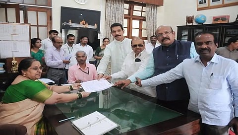 ಬೆಂಗಳೂರು: ಜೆಡಿಎಸ್ ರಾಜ್ಯಾಧ್ಯಕ್ಷ ಸಿಎಂ ಇಬ್ರಾಹಿಂ ರಾಜೀನಾಮೆ ನಂತರ, ತೆರವಾದ ಸ್ಥಾನಕ್ಕೆ ಚುನಾವಣೆ ಘೋಷಣೆಯಾಗಿದ್ದು, ಬಿಜೆಪಿ ಅಭ್ಯರ್ಥಿ ಬಾಬುರಾವ್ ಚಿಂಚನಸೂರ್ ನಾಮಪತ್ರ ಸಲ್ಲಿಸಿದ್ದಾರೆ.