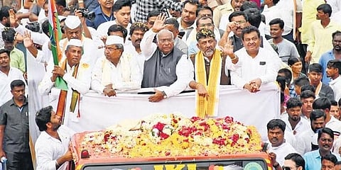 ಕಲಬುರಗಿಗೆ ತಮ್ಮ ಚೊಚ್ಚಲ ಭೇಟಿ ನೀಡಿದ ಖರ್ಗೆಯವರಿಗೆ ಕಲ್ಯಾಣ ಕರ್ನಾಟಕದ ಏಳು ಜಿಲ್ಲೆಗಳ ಜಿಲ್ಲಾ ಕಾಂಗ್ರೆಸ್ ಸಮಿತಿಗಳು ಅದ್ಧೂರಿ ಸ್ವಾಗತ ಮಾಡಿದವು. ಬಳಿಕ ಮಾತನಾಡಿದ ಅವರು, ರಾಜ್ಯದ ನಾಯಕರು ಯಾರು ಮುಖ್ಯಮಂತ್ರಿ ಅಥವಾ ಸಚಿವರಾಗುತ್ತಾರೆ ಎಂಬುದರ ಮೇಲೆ ಗಮನಹರಿಸಬಾರದು. ಚುನಾವಣೆಯಲ್ಲಿ ಹೇಗೆ ಗೆಲ್ಲಬೇಕು ಎಂಬುದರ ಬಗ್ಗೆ ಗಮನಹರಿಸಬೇಕೆಂದು ಹೇಳಿದರು.