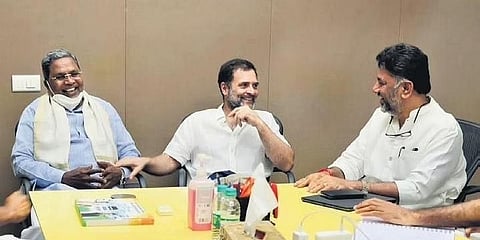 ಬೆಂಗಳೂರು: 2023ರ ರಾಜ್ಯ ವಿಧಾನಸಭಾ ಚುನಾವಣೆಗೆ ಪಕ್ಷದ ಕಾರ್ಯತಂತ್ರದ ಕುರಿತು ಚರ್ಚಿಸಲು ಕಾಂಗ್ರೆಸ್ ಹಿರಿಯ ನಾಯಕ ರಾಹುಲ್ ಗಾಂಧಿ ಅವರು, ಮಂಗಳವಾರ ಸಂಜೆ ರಾಜ್ಯ ಕಾಂಗ್ರೆಸ್ ಅಧ್ಯಕ್ಷ ಡಿಕೆ ಶಿವಕುಮಾರ್ ಮತ್ತು ವಿರೋಧ ಪಕ್ಷದ ನಾಯಕ ಸಿದ್ದರಾಮಯ್ಯ ಅವರೊಂದಿಗೆ ಸಭೆ ನಡೆಸಿದರು.