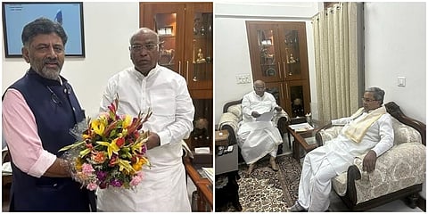 ಡಿಕೆ ಶಿವಕುಮಾರ್ ಅವರೊಂದಿಗಿನ ಸಭೆ ಮುಗಿದಿದ್ದು, ಇದೀಗ ಖರ್ಗೆ ಅವರು ಮಾಜಿ ಮುಖ್ಯಮಂತ್ರಿ ಸಿದ್ದರಾಮಯ್ಯ ಅವರೊಂದಿಗೆ ಚರ್ಚಿಸುತ್ತಿದ್ದಾರೆ.