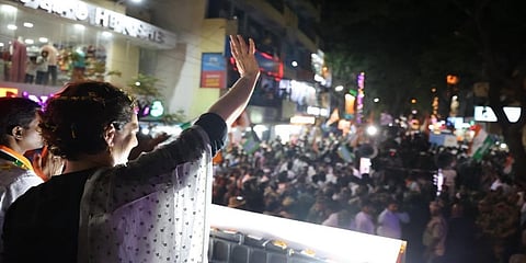 ಬೆಂಗಳೂರು: ಕಾಂಗ್ರೆಸ್ ಪಕ್ಷದ ಪ್ರಧಾನ ಕಾರ್ಯದರ್ಶಿ ಪ್ರಿಯಾಂಕಾ ಗಾಂಧಿ ವಾದ್ರಾ ಬೆಂಗಳೂರಿನಲ್ಲಿ ಮಂಗಳವಾರ ರಾತ್ರಿ ಭರ್ಜರಿ ರೋಡ್ ನಡೆಸಿದರು. ಸಿ.ವಿ. ರಾಮನ್ ನಗರದಲ್ಲಿ ಕಾಂಗ್ರೆಸ್ ಅಭ್ಯರ್ಥಿ ಪರವಾಗಿ ಪ್ರಚಾರ ನಡೆಸಿದ ಪ್ರಿಯಾಂಕಾ ಗಾಂಧಿ ಅವರಿಗೆ ಜನರಿಂದ ಅದ್ದೂರಿ ಸ್ವಾಗತ ದೊರೆಯಿತು.