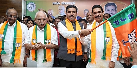 ಬೆಂಗಳೂರು: ರಾಜ್ಯ ಬಿಜೆಪಿ ಘಟಕಕ್ಕೆ ನೂತನ ಸಾರಥಿಯ ನೇಮಕವಾಗಿದೆ. ನೂತನ ರಾಜ್ಯಾಧ್ಯಕ್ಷರಾಗಿ (BJP State President) ಬಿ.ವೈ. ವಿಜಯೇಂದ್ರ (BY Vijayendra) ಅವರು ಬುಧವಾರ ಅಧಿಕಾರ ಸ್ವೀಕರಿಸಿದ್ದಾರೆ. ಇಂದು ಬೆಂಗಳೂರಿನ ಮಲ್ಲೇಶ್ವರದಲ್ಲಿರುವ ಬಿಜೆಪಿ ಕಚೇರಿ ಜಗನ್ನಾಥ ಭವನದಲ್ಲಿ ನಡೆದ ಕಾರ್ಯಕ್ರಮದಲ್ಲಿ ಬಿ ಎಸ್ ಯಡಿಯೂರಪ್ಪ ಬಣದ ನಾಯಕರು ಸೇರಿದಂತೆ ಹಿರಿಯ ನಾಯಕರು ಕಾರ್ಯಕ್ರಮಕ್ಕೆ ಸಾಕ್ಷಿಯಾಗಿದ್ದಾರೆ.