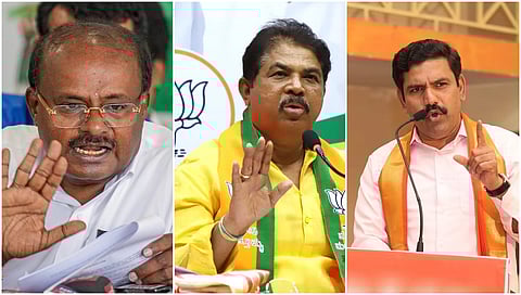 ಬೆಂಗಳೂರು: ಬೆಳಗಾವಿಯಲ್ಲಿ ನಡೆಯುತ್ತಿರುವ ಕಾಂಗ್ರೆಸ್ ಅಧಿವೇಶನದ ಶತಮಾನೋತ್ಸವ ಸಮಾರಂಭದ ಕಟೌಟ್ಗಳಲ್ಲಿ ಗಾಂಧೀಜಿ ಫೋಟೋ ನೋಡಲಿಲ್ಲ. ನಕಲಿ ಗಾಂಧಿಗಳ ಕಟೌಟ್ಗಳನ್ನು ಆಕಾಶದೆತ್ತರಕ್ಕೆ ಹಾಕಿದ್ದಾರೆ. ಜನರ ತೆರಿಗೆ ದುಡ್ಡಿನಲ್ಲಿ ನಕಲಿ ಗಾಂಧಿಗಳ ವಿಜೃಂಭಣೆ ನಡೆಯುತ್ತಿದೆ ಎಂದು ಕೇಂದ್ರ ಬೃಹತ್ ಕೈಗಾರಿಕೆ ಮತ್ತು ಉಕ್ಕು ಖಾತೆ ಸಚಿವ ಎಚ್.ಡಿ.ಕುಮಾರಸ್ವಾಮಿ ಟೀಕಿಸಿದರು.