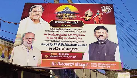 ಬಿಜೆಪಿ ಶಾಸಕ ಶಿವರಾಮ್ ಹೆಬ್ಬಾರ್ ಅವರು ಬನವಾಸಿಯ ಕದಂಬೋತ್ಸವ ಕಾರ್ಯಕ್ರಮಕ್ಕೆ ಸಿಎಂ ಹಾಗೂ ಡಿಸಿಎಂಗೆ ಸ್ವಾಗತ ಕೋರಿ ಬ್ಯಾನರ್ ಹಾಕಿದ್ದಾರೆ.
