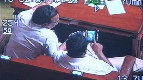 ಶ್ರವಣಬೆಳಗೊಳ: ಹಿಂದಿನ ಬಿಜೆಪಿ ಸರ್ಕಾರದ ಸಚಿವರು ವಿಧಾನಸೌಧದಲ್ಲಿ ನೀಲಿ ಚಿತ್ರ ನೋಡಿದ ಪ್ರಸಂಗವನ್ನೇ ವಸ್ತುವಾಗಿಸಿಕೊಂಡು ರಾಜಕಾರಣಿಗಳ ವರ್ತನೆಯನ್ನು ಲೇಖನಿ ಮೂಲಕ ತಿವಿಯಲಾಯಿತು.