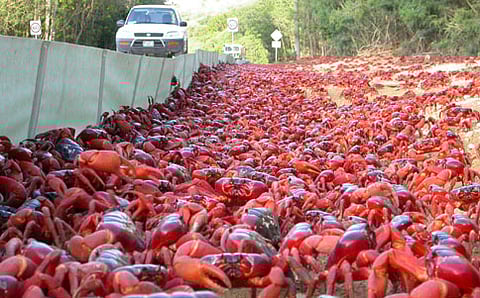 ಆಸ್ಟ್ರೇಲಿಯಾದ ಕ್ರಿಸ್ಮಸ್ ಐಲ್ಯಾಂಡ್ ಹೆಚ್ಚೆಂದರೆ 52 ಚದರ ಅಡಿ ಇರಬಹುದು. ಇಲ್ಲಿ ವಾಸಿಸುವ 2000 ಮಂದಿಯೊಂದಿಗೆ 120 ಮಿಲಿಯನ್ ಏಡಿಗಳು ಸ್ಥಳವನ್ನು ಹಂಚಿಕೊಳ್ಳುತ್ತದೆ. ಪ್ರತಿ ವರ್ಷ ನವೆಂಬರ್ ಸಮಯದಲ್ಲಿ ಸಂಜೆ ಬೀಸಿದ ಗಾಳಿಗೆ ಕಾಡಿನ ಮರಗಳಿಂದ ಉದುರಿದವೇನೋ ಎಂಬಂತೆ ಇದ್ದಕ್ಕಿದ್ದಂತೆ ಲಕ್ಷಗಟ್ಟಲೆ ಕೆಂಪು ಏಡಿಗಳು ಕಾಡಿನಿಂದ ರೋಡಿಗಿಳಿದು, ಕೆಂಪುಹಾಸಿನಂತೆ ಕಂಗೊಳಿಸುತ್ತಾ ಇಂಡಿಯನ್ ಓಶನ್ ಕಡೆಗೆ ಮೊಟ್ಟೆಗಳನ್ನಿಡಲು ನಡೆದು ಹೋಗುತ್ತವೆ.