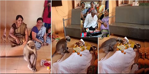 ಅಜ್ಜನ ಆಣತಿಯಂತೆ ಮನೆಯವರು ಕೋತಿಗೆ ಆಹಾರ ನೀಡುತ್ತಿದ್ದರು. ಅದನ್ನು ತಿಂದ ಕೋತಿ ಸಂತೃಪ್ತಿಯಿಂದ ಹೋಗುತ್ತಿತ್ತು. ಆದರೆ ಇಂದು ಅಜ್ಜ ಇಹಲೋಕ ತ್ಯಜಿಸಿದ್ದು, ನಿತ್ಯ ತನಗೆ ಆಹಾರ ನೀಡುತ್ತಿದ್ದ ಅಜ್ಜನ ಹಣೆಗೆ ಮುತ್ತು ನೀಡಿ ಕೋತಿ ತನ್ನ ನಮನ ಅಂತಿಮ ಸಲ್ಲಿಸಿದೆ.