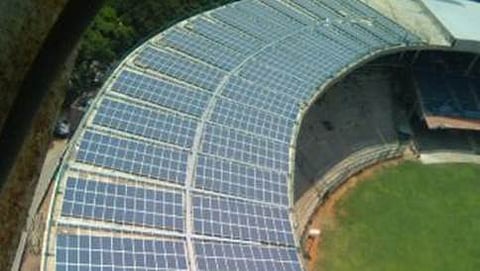 ಬೆಂಗಳೂರು: ಜಗತ್ತಿನ ಖ್ಯಾತ ಕ್ರಿಕೆಟ್ ಕ್ರೀಡಾಂಗಣಗಳಲ್ಲೊಂದಾದ ಚಿನ್ನಸ್ವಾಮಿ ಕ್ರೀಡಾಂಗಣದ ಹಿರಿಮೆಗೆ ಈಗ ಮತ್ತೊಂದು ಗರಿ ಸಂದಿದೆ. ವಿಶ್ವದ ಮೊಟ್ಟಮೊದಲ `ಸೌರ ಇಂಧನ ವ್ಯವಸ್ಥೆ'ಯನ್ನು ಅಳವಡಿಸಿಕೊಂಡ ಖ್ಯಾತಿಗೆ ಚಿನ್ನಸ್ವಾಮಿ ಕ್ರೀಡಾಂಗಣ ಪಾತ್ರವಾಗಿದೆ. ಅಲ್ಲದೆ `ಮೇಲ್ಛಾವಣಿ ವಿದ್ಯುತ್ ಘಟಕ'ವನ್ನು ಹೊಂದಿದ ಮೊಟ್ಟ ಮೊದಲ ಕ್ರೀಡಾಂಗಣವಾಗಿಯೂ ಚಿನ್ನಸ್ವಾಮಿ ಹೊರಹೊಮ್ಮಿದೆ.