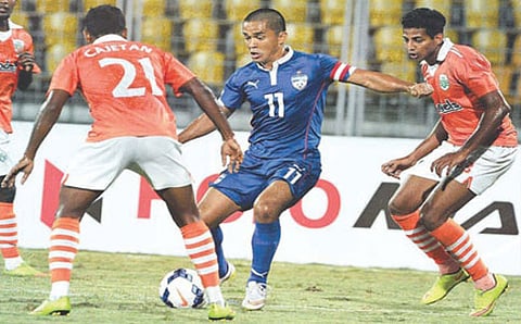 ನಂತರ ಮಿಂಚಿನ ದಾಳಿ ನಡೆಸಿದ ನಾಯಕ ಸುನೀಲ್ ಛೆಟ್ರಿ 37ನೇ ನಿಮಿಷದಲ್ಲಿ ಚೆಂಡನ್ನು ಗೋಲು ಪೆಟ್ಟಿಗೆಗೆ ಸೇರಿಸಿ ತಂಡದ ಅಂತರವನ್ನು ಹೆಚ್ಚಿಸಿದರು. ಈ ಮೂಲಕ ಪಂದ್ಯದ ಮೊದಲ ಅವಧಿಯಲ್ಲೇ ಬೆಂಗಳೂರು ಎಫ್ಸಿ 2-0 ಗೋಲುಗಳ ಅಂತರದ ಮುನ್ನಡೆ ಕಾಯ್ದುಕೊಂಡಿತು.