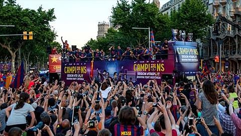 ಬರ್ಲಿನ್: ಯುರೋಪಿಯನ್ ಫುಟ್ಬಾಲ್ ನ ಪ್ರತಿಷ್ಠಿತ ಫುಟ್ಬಾಲ್ ಟೂರ್ನಿಯಾಗಿರುವ ಯುಇಎಫ್ಎ ಚ್ಯಾಂಪಿಯನ್ಸ್ ಲೀಗ್ ಫುಟ್ಬಾಲ್ ಟೂರ್ನಿಯಲ್ಲಿ ಸ್ಪೇನ್ ನ ಎಫ್ ಸಿ ಬಾರ್ಸಿಲೋನಾ ಪ್ರಶಸ್ತಿ ಎತ್ತಿ ಹಿಡಿದಿದೆ. ಶನಿವಾರ ತಡರಾತ್ರಿ ನಡೆದ ಪಂದ್ಯದಲ್ಲಿ ಗೆಲುವಿನ ಫೇವರಿಟ್ ಎಂದೇ ಬಿಂಬಿತವಾಗಿದ್ದ ಬಾರ್ಸಿಲೋನಾ 3-1 ಗೋಲುಗಳ ಅಂತರದಲ್ಲಿ ಜುವೆಂಟಸ್ ವಿರುದ್ಧ ಗೆಲುವು ಸಾಧಿಸಿತು. ಪ್ರಸಕ್ತ ಸಾಲಿನಲ್ಲಿ ಅತ್ಯುತ್ತಮ ಪಾರ್ಮ್ ನಲ್ಲಿರುವ ಬಾರ್ಸಿಲೋನಾ ನಿರೀಕ್ಷೆಯಂತೆ ಚಾಂಪಿಯನ್ ಪಟ್ಟವನ್ನು ಅಲಂಕರಿಸಿತ್ತು. ಅಲ್ಲದೇ 5ನೇ ಬಾರಿಗೆ ಈ ಪ್ರಶಸ್ತಿ ಗೆದ್ದ ಸಾಧನೆ ಮಾಡಿದೆ.