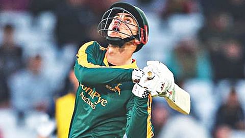 ಟ್ರೆಂಟ್ ಬ್ರಿಡ್ಜ್: ಇಂಗ್ಲೆಂಡಿನ ಬ್ಯಾಟ್ಸ್ಮನ್ ಅಲೆಕ್ಸ್ ಹೇಲ್ಸ್ ಟ್ರೆಂಟ್ ಬ್ರಿಡ್ಜ್ನಲ್ಲಿ ನಡೆದ ನಾಟ್ವೆಸ್ಟ್ ಟಿ20 ಬ್ಲಾಸ್ಟ್ ಕೂಟದಲ್ಲಿ ನಾಟಿಂಗಂಶೈರ್ ತಂಡದ ಪರ ಸತತ 6 ಎಸೆತಗಳಲ್ಲಿ 6 ಸಿಕ್ಸರ್ ಸಿಡಿಸಿದ ಸಾಧನೆ ಮಾಡಿದ್ದಾರೆ.