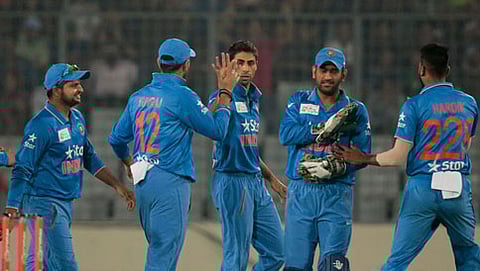 ಭಾರತ ಕೂಡ ತನ್ನ ಬದ್ಧ ಶತ್ರು ಪಾಕಿಸ್ತಾನದ ವಿರುದ್ಧ ಪ್ರಬಲ ಬೌಲಿಂಗ್ ದಾಳಿಯನ್ನೇ ಮಾಡಿತು. ಪ್ರಮುಖವಾಗಿ ಹೊಸ ಪ್ರತಿಭೆ ಪಾಂಡ್ಯ ಅವರು ತಮ್ಮ ವೇಗದ ಮೂಲಕ ಪಾಕ್ ಬ್ಯಾಟ್ಸಮನ್ ಗಳನ್ನು ಕಂಗೆಡಿಸುವ ಮೂಲಕ 3 ಪ್ರಮುಖ ವಿಕೆಟ್ ಗಳಿಸಿದರು. ರವೀಂದ್ರ ಜಡೇಜಾ ಕೂಡ 2 ವಿಕೆಟ್ ಕಬಳಿಸಿ ಪಾಂಡ್ಯಗೆ ಉತ್ತಮ ಸಾಥ್ ನೀಡಿದರು. ಉಳಿದಂತೆ ಆಶೀಶ್ ನೆಹ್ರಾ, ಬುಮ್ರಾಹ್ ಮತ್ತು ಯುವರಾಜ್ ಸಿಂಗ್ ತಲಾ ಒಂದು ವಿಕೆಟ್ ಪಡೆಯುವ ಮೂಲಕ ಪಾಕಿಸ್ತಾನದ ಅಲ್ಪ ಮೊತ್ತಕೆ ಕಾರಣರಾದರು.
