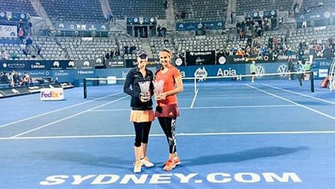 ಸಿಡ್ನಿ: ಆರಂಭಿಕ ಸೆಟ್ನಲ್ಲಿಯೇ ಎದುರಾದ ಸೋಲಿನಿಂದ ಕಿಂಚಿತ್ತೂ ಕಂಗೆಡದೆ ಚೇತರಿಕೆಯ ಪ್ರದರ್ಶನ ನೀಡಿ ಪಂದ್ಯದಲ್ಲಿ ಹಿಡಿತ ಸಾಧಿಸಿದ ಭಾರತದ ಅಗ್ರ ಕ್ರಮಾಂಕಿತೆ ಹಾಗೂ ವಿಶ್ವದ ಮಾಜಿ ನಂ.1 ಆಟಗಾರ್ತಿ ಮಾರ್ಟಿನಾ ಹಿಂಗಿಸ್, ತಮ್ಮ ಗೆಲುವಿನ ನಾಗಾಲೋಟವನ್ನು 30ನೇ ಪಂದ್ಯಕ್ಕೆ ವಿಸ್ತರಿಸಿದ್ದೇ ಅಲ್ಲದೆ, ಸಿಡ್ನಿ ಇಂಟರ್ನ್ಯಾಷನಲ್ ಟೆನಿಸ್ ಪಂದ್ಯಾ ವಳಿಯಲ್ಲಿ ಚಾಂಪಿಯನ್ ಆದರು. ವಿಶ್ವದ ನಂ.1 ಮಹಿಳಾ ಜೋಡಿಯಾದ ಸಾನಿಯಾ ಮತ್ತು ಹಿಂಗಿಸ್ ಶುಕ್ರವಾರ ಇಲ್ಲಿನ ನ್ಯೂ ಸೌತ್ ವೇಲ್ಸ್ ಸೆಂಟರ್ನಲ್ಲಿ ಮುಕ್ತಾಯ ಕಂಡ ಪಂದ್ಯಾವಳಿಯಲ್ಲಿ ಫ್ರಾನ್ಸ್ ನ ಮೂರನೇ ಶ್ರೇಯಾಂಕಿತ ಜೋಡಿ ಕೆರೋಲಿನ್ ಗಾರ್ಸಿಯಾ ಮತ್ತು ಕ್ರಿಸ್ಟಿನಾ ಮ್ಲೆಡೆನೋವಿಕ್ ಜೋಡಿ ಎದುರಿನ ಪ್ರಶಸ್ತಿ ಸುತ್ತಿನ ಸೆಣಸಾಟದಲ್ಲಿ 1-6, 7-5, 10-5 ಸೆಟ್ಗಳ ಗೆಲುವು ಪಡೆಯಿತು. ಈ ಪ್ರಶಸ್ತಿಯೊಂದಿಗೆ ಈ ಋತುವಿನಲ್ಲಿ ಸಾನಿಯಾ-ಹಿಂಗಿಸ್ ಎರಡನೇ ಹಾಗೂ ಒಟ್ಟಾರೆ 11 ಪ್ರಶಸ್ತಿಗಳನ್ನು ಗೆದ್ದ ಸಾಧನೆಗೆ ಭಾಜನವಾಯಿತು. ಈ ಅಭೂತಪೂರ್ವ ಗೆಲುವು ಸೋಮವಾರ ಶುರುವಾಗಲಿರುವ ಆಸ್ಟ್ರೇಲಿಯಾ ಓಪನ್ಗೆ ಹೆಚ್ಚಿನ ಆತ್ಮವಿಶ್ವಾಸ ತಂದುಕೊಟ್ಟಂತಾಗಿದೆ. ಗ್ರೇಟ್ ಕಂ ಬ್ಯಾಕ್!: ಅಂದಹಾಗೆ ಸಾನಿಯಾ-ಹಿಂಗಿಸ್ ಜೋಡಿಯ ಜೈತ್ರಯಾತ್ರೆಗೆ ಇನ್ನೇನು ತೆರೆ ಎಳೆದುಬಿಟ್ಟೆವೇನೋ ಎಂಬಷ್ಟರ ಮಟ್ಟಿಗೆ ಮೊದಲ ಸೆಟ್ನಲ್ಲಿ ಅಬ್ಬರದ ಪ್ರದರ್ಶನ ನೀಡಿದ ಫ್ರಾನ್ಸ್ ನ ಜೋಡಿ, ಎರಡನೇ ಸೆಟ್ನಲ್ಲಿಯೂ 5-2ರಿಂದ ವಿಜೃಂಭಿಸಿತು. ಆದರೆ, ಈ ಹಂತದಲ್ಲಿ ಸಾನಿಯಾ ಮತ್ತು ಹಿಂಗಿಸ್ ತಿರುಗಿಬಿದ್ದ ಪರಿ ಟೆನಿಸ್ ಕೋರ್ಟ್ನಲ್ಲಿ ಪಂದ್ಯವನ್ನು ನೋಡುತ್ತಾ ಕುಳಿತಿದ್ದ ಪ್ರೇಕ್ಷಕರು ದಿಗ್ಗನೇಳುವಂತೆ ಮಾಡಿತು. ಏಕಪಕ್ಷೀಯವಾಗಿದ್ದ ಪಂದ್ಯದಲ್ಲಿ ಸಾನಿಯಾ ಜೋಡಿಗೆ ಸೋಲು ನಿಶ್ಚಿತ ಎಂದುಕೊಂಡವರಿಗೆ ಈ ಇಂಡೋ-ಸ್ವಿಸ್ ಜೋಡಿ ಭರಪೂರ ಮನರಂಜನೆ ನೀಡಿತು. ಅದರಲ್ಲೂ ಸೂಪರ್ ಟೈ ಬ್ರೇಕರ್ ಗೇಮ್ ಅಂತೂ ಯಾರತ್ತ ವಾಲುತ್ತದೆ ಎಂಬುದೇ ಕೌತುಕ ಕೆರಳಿಸಿತು. ಆದರೆ, ತಮ್ಮೆಲ್ಲಾ ಅನುಭವಧಾರೆ ಎರೆದ ಸಾನಿಯಾ-ಹಿಂಗಿಸ್ ಫ್ರಾನ್ಸ್ ಜೋಡಿಗೆ ಸೋಲುಣಿಸುವಲ್ಲಿ ಯಶ ಕಂಡಿತು.