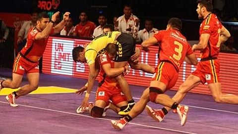 4ನೇ ಆವೃತ್ತಿಯ ಪ್ರೊ ಕಬಡ್ಡಿ ಲೀಗ್ ನಲ್ಲಿ ಉತ್ತಮ ಪ್ರದರ್ಶನ ನೀಡುತ್ತಿರುವ ಬೆಂಗಳೂರು ಬುಲ್ಸ್ ತಂಡ ತೆಲುಗು ಟೈಟಾನ್ಸ್ ತಂಡವನ್ನು 30-28 ಅಂಕಗಳಿಂದ ಮಣಿಸಿ ರೋಚಕ ಜಯ ಗಳಿಸಿದೆ.
