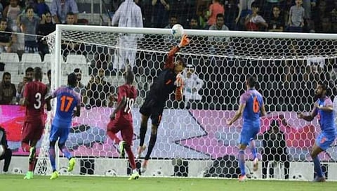 ದೋಹಾ: ಗುರುಪ್ರೀತ್ ಸಿಂಗ್ ಸಂಧು ಅವರ ದಿಟ್ಟ ರಕ್ಷಣಾತ್ಮಕ ಗೋಲ್ ಕೀಪರ್ ಕೌಶಲ್ಯದಿಂದ ಏಷ್ಯನ್ ಚಾಂಪಿಯನ್ಸ್ ಕತಾರ್ ವಿರುದ್ಧ ಭಾರತ ತಂಡ ಫಿಫಾ ವಿಶ್ವಕಪ್ ಅರ್ಹತಾ ಸುತ್ತಿನ ಎರಡನೇ ಪಂದ್ಯದಲ್ಲಿ ಡ್ರಾ ಸಾಧಿಸಿತು. ಆ ಮೂಲಕ 'ಇ' ಗುಂಪಿನ ಅಂಕಪಟ್ಟಿಯಲ್ಲಿ ಭಾರತ ಮೊದಲನೇ ಅಂಕ ಪಡೆಯಿತು.