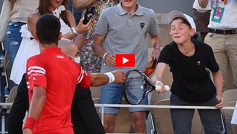 ಪ್ಯಾರಿಸ್: ಫ್ರೆಂಚ್ ಓಪನ್ 2021ರ ಫೈನಲ್ ಪಂದ್ಯದಲ್ಲಿ ಸ್ಟೆಫನೊಸ್ ಸಿಟ್ಸಿಪಾಸ್ ವಿರುದ್ಧ ಅಂತಿಮ ಮೂರು ಸೆಟ್ ಗಳಲ್ಲಿ ಗೆಲುವು ದಾಖಲಿಸಿ ಚಾಂಪಿಯನ್ ಪಟ್ಟ ಅಲಂಕರಿಸಿದ ನೊವಾಕ್ ಜೊಕೋವಿಕ್ ತಮ್ಮ ಗೆಲುವಿನ ರಾಕೆಟ್ ಅನ್ನು ಬಾಲಕನಿಗೆ ನೀಡಿದ್ದಾರೆ.