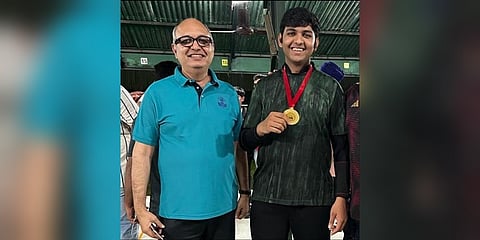 ಬೆಂಗಳೂರು: ಕೇವಲ ಮೂರೇ ತಿಂಗಳಲ್ಲಿ ತಂದೆಯಿಂದ ತರಬೇತಿ ಪಡೆದ ಬೆಂಗಳೂರಿನ ಯುವಕನೊಬ್ಬ ರಾಷ್ಟ್ರೀಯ ಮಟ್ಟದ ಶೂಟಿಂಗ್ ಚಾಂಪಿಯನ್ಶಿಪ್ನಲ್ಲಿ ಚಿನ್ನದ ಪದಕ ಗೆದ್ದು ವಿಶೇಷ ಸಾಧನೆ ಮಾಡಿದ್ದಾನೆ.