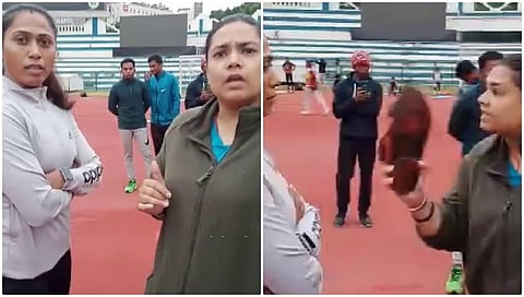 ಬೆಂಗಳೂರು: ಕಂಠೀರವ ಕ್ರೀಡಾಂಗಣದಲ್ಲಿ ರಾಜ್ಯದ ಅಥ್ಲೀಟ್ ಬಿಂದುರಾಣಿ ಮೇಲೆ ಕೋಚ್ ಪತ್ನಿಯೊಬ್ಬರು ದೌರ್ಜನ್ಯ ನಡೆಸಿದ್ದು ಅಲ್ಲದೆ ಚಪ್ಪಲಿ ತೋರಿಸಿ ಆಕ್ರೋಶ ಹೊರಹಾಕಿದ್ದಾರೆ.