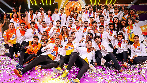 ಹರಿಯಾಣ ಸ್ಟೀಲರ್ಸ್ ವಿರುದ್ಧದ ರೋಚಕ ಫೈನಲ್ ಪಂದ್ಯದಲ್ಲಿ ಗೆದ್ದ ತಂಡವು ಪಿಕೆಎಲ್ ಇತಿಹಾಸದಲ್ಲೇ ಮೊಟ್ಟಮೊದಲ ಟ್ರೋಫಿ ಎತ್ತಿಹಿಡಿದಿದೆ. ಮಾರ್ಚ್ 1ರ ಶುಕ್ರವಾರ ರಾತ್ರಿ ಹೈದರಾಬಾದ್ನ ಗಚ್ಚಿಬೌಲಿ ಒಳಾಂಗಣ ಕ್ರೀಡಾಂಗಣದಲ್ಲಿ ನಡೆದ ಪ್ರಶಸ್ತಿ ಸುತ್ತಿನ ಹಣಾಹಣಿಯಲ್ಲಿ ಅಸ್ಲಾಮ್ ಇನಾಮ್ದಾರ್ ನೇತೃತ್ವದ ಪುಣೇರಿ ಪಲ್ಟನ್ ತಂಡ ಗೆದ್ದು ಚಾಂಪಿಯನ್ ಆಗಿದೆ.