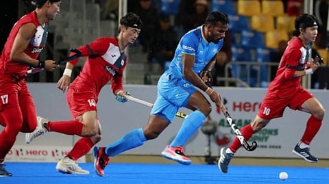ಹುಲುನ್ಬುಯರ್(ಚೀನಾ): ಭಾರತೀಯ ಪುರುಷರ ಹಾಕಿ ತಂಡವು 2024ರ ಏಷ್ಯನ್ ಚಾಂಪಿಯನ್ಸ್ ಟ್ರೋಫಿಯ ಫೈನಲ್ಗೆ ಟಿಕೆಟ್ ಕಾಯ್ದಿರಿಸಿದೆ. ಭಾರತ ಸೆಮಿಫೈನಲ್ ಪಂದ್ಯದಲ್ಲಿ ದಕ್ಷಿಣ ಕೊರಿಯಾವನ್ನು 4-1 ಅಂತರದ ಗೋಲುಗಳಿಂದ ಗೆದ್ದುಕೊಂಡಿದೆ. ಭಾರತದ ಪರ ನಾಯಕ ಹರ್ಮನ್ಪ್ರೀತ್ ಸಿಂಗ್ ಎರಡು ಗೋಲು ಗಳಿಸಿದ್ದು ಒಟ್ಟಾರೆ ಟೂರ್ನಿಯಲ್ಲಿ 7 ಗೋಲು ದಾಖಲಿಸಿದ್ದಾರೆ.