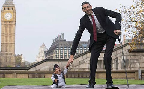 ಅತೀ ಎತ್ತರದ ಮನುಷ್ಯನೆಂಬ ದಾಖಲೆ ಹೊಂದಿರುವ 2.51 ಮೀಟರ್ (8 ಫೀಟ್, 9 ಇಂಚುಗಳು) ಎತ್ತರದ ಟರ್ಕಿಯ ಸುಲ್ತಾನ್ ಕೋಸೆನ್ ಮತ್ತು ಪ್ರಚಂಡ ಕುಳ್ಳನೆಂದ ಖ್ಯಾತನಾದ 55 ಸೆಂಟಿಮೀಟರ್ (ಇಪ್ಪತ್ತೊಂದೂವರೆ ಇಂಚುಗಳು) ಎತ್ತರದ ನೇಪಾಳದ ಚಂದ್ರ ಬಹದ್ದೂರ್ ದಾಂಗಿ ಒಂದೇ ವೇದಿಕೆಯಲ್ಲಿ ಕಾಣಿಸಿಕೊಂಡು ಅಚ್ಚರಿ ಮೂಡಿಸಿದ್ದಾರೆ.