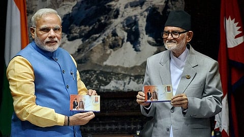 ಕಾಠ್ಮಂಡು: ಭಾರತೀಯ ಪ್ರಧಾನಿ ನರೇಂದ್ರ ಮೋದಿ ಮತ್ತು ನೇಪಾಳದ ಪ್ರಧಾನ ಮಂತ್ರಿ ಸುಶೀಲ್ ಕೊಯಿರಾಲ ಬುಧವಾರ ಕಾಠ್ಮಂಡು-ದೆಹಲಿ ಬಸ್ ಸೇವೆ "ಪಾಶುಪತಿನಾಥ್ ಎಕ್ಸ್ ಪ್ರೆಸ್" ಗೆ ಚಾಲನೆ ನೀಡಿದ್ದಾರೆ.