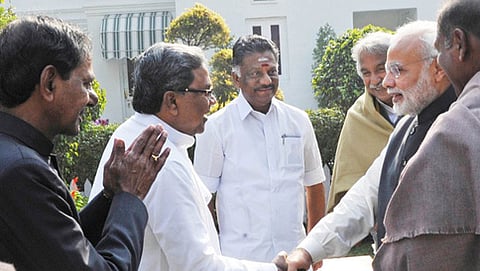 ಬೆಂಗಳೂರು: ರಾಜ್ಯದಲ್ಲಿ ಅನುಷ್ಠಾನಗೊಳ್ಲಲಿರುವ ಮುಂದಿನ ಎಲ್ಲ ರೈಲ್ವೇ ಯೋಜನೆಗಳ ಸಂಪೂರ್ಣ ವೆಚ್ಚವನ್ನು ಕೇಂದ್ರ ಸರ್ಕಾರವೇ ಭರಿಸಬೇಕೆಂದು ಸಿದ್ದರಾಮಯ್ಯ ತಾಕೀತು ಮಾಡಿದ್ದಾರೆ. ಪ್ರಧಾನ ಮಂತ್ರಿ ನರೇಂದ್ರ ಮೋದಿ ಕರೆದಿದ್ದ ನೀತಿ ಆಯೋಗದ ಮೊದಲ ಸಭೆಯಲ್ಲಿ ಸಿದ್ಧರಾಮಯ್ಯ ರೈಲ್ವೇ ಯೋಜನೆಗಳಿಗೆ ರಾಜ್ಯ ಸರ್ಕಾರ ಹಣ ನೀಡಲು ಸಾಧ್ಯವಾಗದ ಬಗ್ಗೆ ಮಾತನಾಡಿದ್ದಾರೆ.