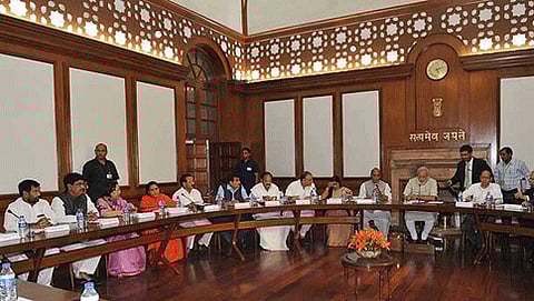 ಈ ನಿಟ್ಟಿನಲ್ಲಿ ಶನಿವಾರ ದೆಹಲಿಯಲ್ಲಿ ಕೇಂದ್ರ ಗೃಹ ಸಚಿವ ರಾಜನಾಥ್ ಸಿಂಗ್ ನಿವಾಸದಲ್ಲಿ ಸಚಿವರ ಸಭೆ ನಡೆಯಿತು. ಸುಷ್ಮಾ ಸ್ವರಾಜ್, ಜೇಟ್ಲಿ ಸಭೆಯಲ್ಲಿದ್ದರು. ಇದಕ್ಕೂ ಮೊದಲು ಬಿಜೆಪಿ ರಾಷ್ಟ್ರೀಯ ಅಧ್ಯಕ್ಷ ಅಮಿತ್ ಶಾ ಅವರ ಜತೆಗೆ ಸಮಾಲೋಚನೆ ನಡೆಸಿದ್ದಾರೆ. ಈ ನಡುವೆ, ರೈತ ಪ್ರತಿನಿಧಿಗಳು ಕೂಡ ರಾಜನಾಥ್ ರನ್ನು ಭೇಟಿಯಾಗಿ ಭೂಸ್ವಾಧೀನ ಸುಗ್ರೀವಾಜ್ಞೆ ಹಿಂಪಡೆಯುವಂತೆ ಮನವಿ ಮಾಡಿದ್ದಾರೆ ಎನ್ನಲಾಗಿದೆ.