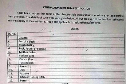 ಮುಂಬೈ: ತೀವ್ರ ಚರ್ಚೆಗೆ ಒಳಗಾಗಿದ್ದ ಸೆನ್ಸಾರ್ ಮಂಡಳಿಯ ೨೮ ಬೈಗುಳ-ಆಕ್ಷೇಪಾರ್ಹ ಪದಗಳ ಬಳಕೆಯ ನಿಷೇಧಕ್ಕೆ ಕೊನೆಗೂ ಸೆನ್ಸಾರ್ ಮಂಡಳಿ ತಡೆ ನೀಡಿದೆ. ಸೆನ್ಸಾರ್ ಮಂಡಲಿ ಬಿಡುಗಡೆ ಮಾಡಿದ್ದ ಈ ಪಟ್ಟಿ ತೀವ್ರ ವಿವಾದಕ್ಕೆ ಎಡೆ ಮಾಡಿ ಕೊಟ್ಟಿತ್ತು.