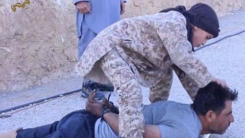 ಪ್ರಾಚೀನ ನಗರ ಪಲ್ಮೀರಾ ಬಳಿ ತಲೆಗೆ ಕಪ್ಪು ಬಟ್ಟೆಯನ್ನು ಕಟ್ಟಿರುವ, ಮುಖವಾಢ ಧರಿಸದ ಬಾಲಕನೊಬ್ಬ ಖೈದಿಯ ಕತ್ತು ಕೊಯ್ಯುತ್ತಿರುವ ದೃಶ್ಯ ವಿಡಿಯೋದಲ್ಲಿ ಸೆರೆಯಾಗಿದೆ.