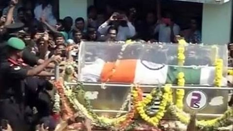 ನಿನ್ನೆ ವಿಮಾನವು ವಿಶೇಷ ಹೆಲಿಪ್ಯಾಡ್ನಲ್ಲಿ ಇಳಿಯುತ್ತಿದ್ದಂತೆ ಜನರ ನೂಕು ನುಗ್ಗಲು ಶುರುವಾಗಿತ್ತು. ತಕ್ಷಣ ಎಚ್ಚೆತ್ತ ಭದ್ರತಾ ತಂಡ ಜನರನ್ನು ನಿಯಂತ್ರಿಸುವಲ್ಲಿ ಯಶಸ್ವಿಯಾಯಿತು. ಮೊದಲಿಗೆ ಅವರ ಪಾರ್ಥಿವ ಶರೀರವನ್ನು ಮಧುರೆಗೆ ತಂದು ಅಲ್ಲಿಂದ 10ಕಿ.ಮೀ.ವರೆಗೆ ಸೇನಾ ವಾಹನದಲ್ಲಿ ತರಲಾಯಿತು, ಈ ವೇಳೆ ಮಾರ್ಗದುದ್ದಕ್ಕೂ ಜನರು ಅಗಲಿದ ನಾಯಕನಿಗೆ ಅಶ್ರುತರ್ಪಣಗೈದರು.