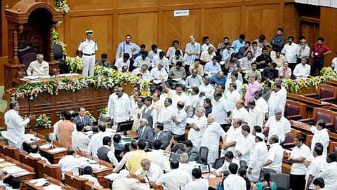 ಸದನದಲ್ಲಿ ಉಂಟಾದ ಈ ಗದ್ದಲದ ಮಧ್ಯೆ ಮಾತನಾಡಿದ ಸ್ಪೀಕರ್ ಕಾಗೋಡು ತಿಮ್ಮಪ್ಪ ಅವರು, ಭಷ್ಟಾಚಾರ ಪ್ರಕರಣವನ್ನು ರಾಜ್ಯ ಸರ್ಕಾರ ಸಿಬಿಐ ತನಿಖೆಗೆ ವಹಿಸಿದ್ದು, ಈ ಬಗೆಗಿನ ಚರ್ಚೆ ಬಿಟ್ಟು ಬೇರೆ ವಿಚಾರದ ಬಗ್ಗೆ ಚರ್ಚೆ ನಡೆಸೋಣ ಎಂದು ಹೇಳಿದ್ದಾರೆ. ಇದಕ್ಕೊಪ್ಪದ ಪ್ರತಿಪಕ್ಷದ ಸದಸ್ಯರು ಮತ್ತೆ ಸದನದಲ್ಲಿ ಗದ್ದಲವನ್ನು ಮುಂದುವರೆಸಿದ್ದಾರೆ. ಅಲ್ಲದೆ, ಪ್ರಕರಣ ಸಂಬಂಧ ಮುಖ್ಯಮಂತ್ರಿ ಸಿದ್ದರಾಮಯ್ಯ ಅವರು ಮೌನ ವಹಿಸಿದ್ದು, ಪ್ರಕರಣವನ್ನು ಮುಚ್ಚಿಹಾಕುವ ಹುನ್ನಾರಗಳು ನಡೆಯುತ್ತಿದೆ ಎಂದು ಆರೋಪಿಸಿವೆ.