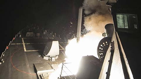 ಡಮಾಸ್ಕಸ್: ಸಿರಿಯಾದ ಬಂಡುಕೋರರ ನೆಲೆಗಳ ಮೇಲೆ ಇತ್ತೀಚೆಗೆ ನಡೆದಿದ್ದ ವಿಷಾನಿಲ ಬಾಂಬ್ ದಾಳಿಗೆ ಪ್ರತೀಕಾರವಾಗಿ ಅಮೆರಿಕ ಸೇನೆ ಸಿರಿಯಾ ಸೇನಾ ನೆಲೆಗಳ ಮೇಲೆ ಕ್ಷಿಪಣಿ ದಾಳಿ ಆರಂಭಿಸಿದೆ.
