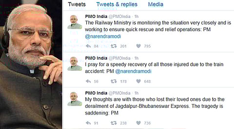 ದುರಂತ ಸಂಬಂಧ ಟ್ವಿಟರ್ ನಲ್ಲಿ ಪ್ರತಿಕ್ರಿಯೆ ನೀಡಿರುವ ಪ್ರಧಾನಿ ನರೇಂದ್ರ ಮೋದಿ ಅವರು, ರೈಲು ಹಳಿ ತಪ್ಪಿದ್ದರಿಂದ ದುರಂತ ಸಂಭವಿಸಿದೆ. ದುರಂತ ನಿಜಕ್ಕೂ ನೋವು ತಂದಿದೆ. ದುರಂತದಲ್ಲಿ ಗಾಯಗೊಂಡ ಪ್ರಯಾಣಿಕರು ಶೀಘ್ರ ಚೇತರಿಕೆ ಕಾಣುವಂತೆ ದೇವರಲ್ಲಿ ಪ್ರಾರ್ಥಿಸುತ್ತೇನೆ. ರೈಲ್ವೇ ಇಲಾಖೆ ರಕ್ಷಣಾ ಕಾರ್ಯಾಚರಣೆಯ ಮೇಲ್ವಿಚಾರಣೆಯಲ್ಲಿ ತೊಡಗಿದ್ದು, ಪ್ರಯಾಣಿಕರ ರಕ್ಷಣೆಗೆ ಆದ್ಯತೆ ನೀಡಲಾಗುತ್ತದೆ ಎಂದು ಹೇಳಿದ್ದಾರೆ.