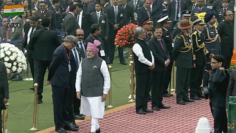 ಗಣರಾಜ್ಯೋತ್ಸವದ ವಿಶೇಷ ಅತಿಥಿಯಾಗಿ ಆಗಮಿಸಿರುವ ಅಬುಧಾಬಿಯ ಯುವರಾಜ ಶೇಖ್ ಮೊಹಮ್ಮದ್ ಬಿನ್ ಜಾಯೇದ್ ಅವರು ಕೂಡ ದೆಹಲಿಯ ರಾಜ್ ಪಥ್ ಗೆ ಆಗಮಿಸಿದ್ದು, ಕೇಂದ್ರ ಸರ್ಕಾರದ ವಿವಿಧ ಅಧಿಕಾರಿಗಳು ಯುವರಾಜನನ್ನು ಸ್ವಾಗತಿಸಿದ್ದಾರೆ. ಇದೇ ವೇಳೆ ವೀರಮರಣವನ್ನಪ್ಪಿದ ಭಾರತೀಯ ಹುತಾತ್ಮ ಯೋಧರಿಗೆ ಪ್ರಧಾನಿ ನರೇಂದ್ರ ಮೋದಿ ಗೌರವ ವಂದನೆ ಸಲ್ಲಿಸಿದರು. ದೆಹಲಿಯ ಇಂಡಿಯಾ ಗೇಟ್ ಬಳಿ ಇರುವ ಅಮರ್ ಜವಾನ್ ಜ್ಯೋತಿಗೆ ನಮನ ಸಲ್ಲಿಸುವ ಮೂಲಕ ಪ್ರಧಾನಿ ಮೋದಿ ಗೌರವ ಸಲ್ಲಿಸಿದರು. ಪ್ರಧಾನಿ ನರೇಂದ್ರ ಮೋದಿ ಅವರಿಗೆ ಮೂರು ದಳದ ಸೇನಾ ಮುಖ್ಯಸ್ಥರು ಸಾಥ್ ನೀಡಿದರು.