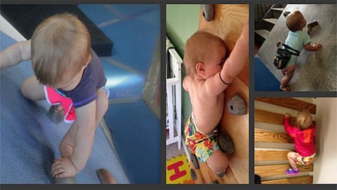 ಸರಿಯಾಗಿ ಹೆಜ್ಜೆಯಿಟ್ಟು ನಡೆಯುವ ಮುನ್ನವೇ ಗೋಡೆ ಹತ್ತುತ್ತಿರುವ ಮಗುವನ್ನು ನೋಡಿದ್ದೀರಾ? ಅಚ್ಚರಿಯಾಗಬಹುದು!! ಆದರೆ ಇದು ನಿಜ. ಅರಿಜೋನಾದ ಎಲ್ಲೀ ಫಾರ್ಮರ್ ಎಂಬ 20 ತಿಂಗಳ ಬಾಲೆ ರಾಕ್ ಕ್ಲೈಂಬಿಂಗ್ಗೆ ಪ್ರಾಕ್ಟೀಸ್ ಮಾಡುವಂತೆ ಗೋಡೆಗೆ ಹತ್ತುತ್ತಿರುವ ವೀಡಿಯೋ ಈಗ ಸಾಮಾಜಿಕ ತಾಣದಲ್ಲಿ ಸಂಚಲನ ಸೃಷ್ಟಿಸಿದೆ.