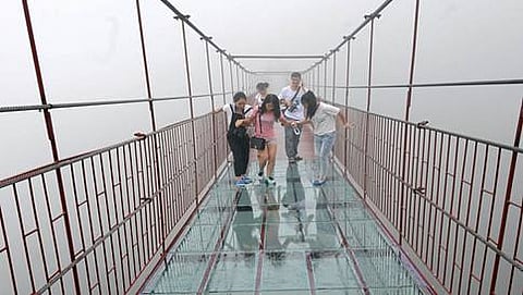 ಬೀಜಿಂಗ್: ಸಮುದ್ರ ಮಟ್ಟದಿಂದ 3 ಸಾವಿರದ 500 ಅಡಿ ಎತ್ತರದಲ್ಲಿ ವಿಶ್ವದ ಅತಿದೊಡ್ಡ ಮತ್ತು ಉದ್ದವಾದ ಎಂದು ನಂಬುವ ಹೊಚ್ಚಹೊಸ ಪಾರದರ್ಶಕ ಗಾಜಿನ ಸೇತುವೆ ಚೀನಾದ ಯುಂಟೈ ಪರ್ವತ ಪ್ರದೇಶದಲ್ಲಿ ನಿರ್ಮಾಣಗೊಂಡಿದ್ದು, ಪ್ರವಾಸಿಗರಿಗೆ ಭೀಕರ ಮತ್ತು ರೋಮಾಂಚಕ ಅನುಭವವನ್ನು ಒಟ್ಟಿಗೆ ನೀಡುತ್ತಿದೆ. ಇದನ್ನು ಇತ್ತೀಚೆಗಷ್ಟೆ ಸಾರ್ವಜನಿಕ ಸಂಚಾರಕ್ಕೆ ಮುಕ್ತಗೊಳಿಸಲಾಗಿತ್ತು.