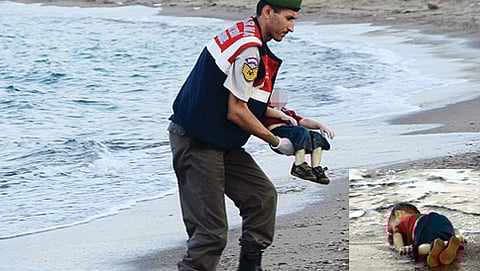 ಇಸ್ತಾಂಬುಲ್: ಟರ್ಕಿಯ ಬೋಡ್ರಮ್ ಸಮುದ್ರ ಕಿನಾರೆಯಲ್ಲಿ ಮೃತಪಟ್ಟು ಬಿದ್ದಿರುವ ಮೂರು ವರ್ಷದ ಬಾಲಕನ ಫೋಟೋ ಸಾಮಾಜಿಕ ತಾಣಗಳಲ್ಲಿ ಸಂಚಲನ ಸೃಷ್ಟಿಸಿದ್ದು, ಬಾಲಕನ ಮರಣಕ್ಕೆ ಇಡೀ ವಿಶ್ವವೇ ಕಂಬನಿ ಮಿಡಿದಿದೆ.