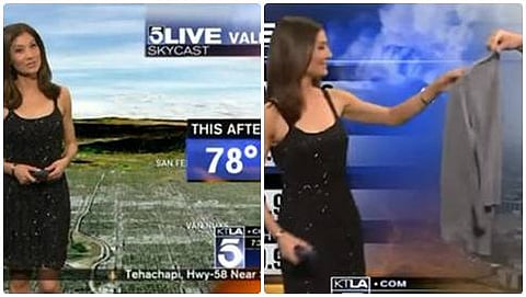 ಟಿವಿಯಲ್ಲಿ ಹವಾಮಾನ ವರದಿಯನ್ನು ಓದುವಾಕೆ ಕನಿಷ್ಠ ಉಡುಗೆಯಲ್ಲಿ ಟಿವಿಯಲ್ಲಿ ಕಾಣಿಸಿಕೊಂಡು ಹವಾಮಾನ ವರದಿಯನ್ನು ಮಂಡಿಸಲು ಮುಂದಾದಾಗ ಆ ಟಿವಿ ವಾಹಿನಿಯ ವೀಕ್ಷಕರು ಸಂದೇಶಗಳ ಸುರಿಮಳೆಗೈಯತೊಡಗಿದರು.ಹವಾಮಾನ ವರದಿ ಓದುವಾಗ ಕನಿಷ್ಠ ಬಟ್ಟೆ ತೊಡುವುದು ಏಕೆ? ನಿಮ್ಮ ಬಟ್ಟೆಯನ್ನು ಬದಲಾಯಿಸಿಕೊಳ್ಳಿ ಎಂದು ತಾಕೀತು ಮಾಡಿದರು. ಅದೂ ಲೈವ್ ಕಾರ್ಯಕ್ರಮದಲ್ಲಿ. ಆ ವಿಡಿಯೋ ಈಗ ಸಾಮಾಜಿಕ ಜಾಲತಾಣದಲ್ಲಿ ವೈರಲ್ ಆಗಿದೆ.