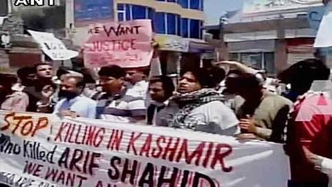 ಕಾಶ್ಮೀರ ರಾಷ್ಟ್ರೀಯತಾವಾದಿ ಮುಖಂಡ ಆರಿಫ್ ಶಾಹೀದ್ ಹತ್ಯೆ ಪ್ರಕರಣವನ್ನು ಸ್ವತಂತ್ರ ತನಿಖೆ ನಡೆಸುವಂತೆ ಪ್ರತಿಭಟನಾಕಾರರು ಆಗ್ರಹಿಸಿದ್ದಾರೆ.
