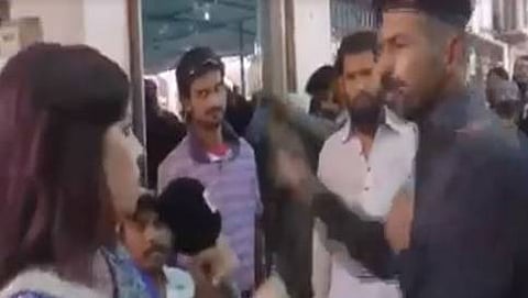 ಕೆ-21 ನ್ಯೂಸ್ ಚಾನಲ್ನ ಸೈಮಾ ಕನ್ವಾಲ್ ಕರಾಚಿಯ ನದ್ರಾ ನೋಂದಣಿ ಕಚೇರಿಯಲ್ಲಿ ವರದಿ ಮಾಡುತ್ತಿದ್ದ ವೇಳೆ ಈ ಘಟನೆ ನಡೆದಿದೆ.