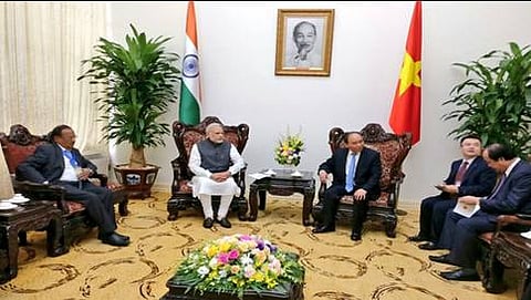 15 ವರ್ಷಗಳಲ್ಲಿ ವಿಯೆಟ್ನಾಯಂ ಗೆ ಭೇಟಿ ನೀಡುತ್ತಿರುವ ಮೊದಲ ಪ್ರಧಾನಿ ನರೇಂದ್ರ ಮೋದಿ ಅವರಾಗಿದ್ದು, ವಿಯೆಟ್ನಾಂ ಅಧ್ಯಕ್ಷ ಪ್ರಧಾನಿ ನರೇಂದ್ರ ಮೋದಿ ಅವರನ್ನು ಸ್ವಾಗತಿಸಿದ್ದಾರೆ.