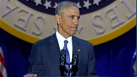 ತಮ್ಮ ತವರು ಕ್ಷೇತ್ರ ಚಿಕಾಗೋದಲ್ಲಿ ತಮ್ಮ ಕೊನೆಯ ವಿದಾಯದ ಭಾಷಣದಲ್ಲಿ ಅಮೆರಿಕ ಪ್ರಜೆಗಳನ್ನು ಉದ್ದೇಶಿಸಿ ಮಾತನಾಡಿದ ಒಬಾಮ ಅವರು, ತಮ್ಮ ಆಡಳಿತದ ಸಂದರ್ಭದಲ್ಲಿ ತಮಗೆ ಸಹಕರಿಸಿದ ಪ್ರತಿಯೊಬ್ಬರಿಗೂ ನಾನು ಧನ್ಯವಾದ ಹೇಳುತ್ತೇನೆ ಎಂದು ಹೇಳಿದರು. ತಮ್ಮ ವಿದಾಯದ ಭಾಷಣದಲ್ಲಿ ಹಲವು ವಿಚಾರಗಳನ್ನು ಪ್ರಸ್ತಾಪಿಸಿದ ಒಬಾಮ ಪ್ರಮುಖವಾಗಿ ಭಯೋತ್ಪಾದನೆ, ಅಭಿವೃದ್ಧಿ ಮತ್ತು ಅಮೆರಿಕ ಯುವಕರಿಗೆ ಸಂಬಂಧಿಸಿದಂತೆ ಮಾತನಾಡಿದರು.