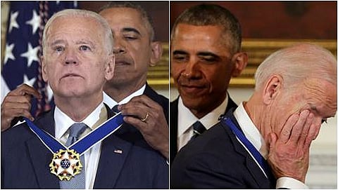 ಇನ್ನು ದೇಶದ ಅತ್ಯುನ್ನತ ನಾಗರಿಕ ಪ್ರಶಸ್ತಿಗೆ ಭಾಜನರಾದ ಉಪಾಧ್ಯಕ್ಷ ಜೋಯೆ ಬಿಡೆನ್ ಅವರು, ವೇದಿಕೆಯಲ್ಲೇ ಆನಂದಭಾಷ್ಪ ಸುರಿಸುವ ಮೂಲಕ ತಮ್ಮ ಆನಂದವನ್ನು ವ್ಯಕ್ತಪಡಿಸಿದರು. ಈ ವೇಳೆ "ಅಧ್ಯಕ್ಷರೇ ನಿಮ್ಮ ಋಣ ತೀರಿಸಲಾಗದ್ದು. ನಿಮ್ಮ ಹಾಗೂ ಕುಟುಂಬದ ಸ್ನೇಹಕ್ಕೆ ನಾನು ಚಿರಋಣಿ" ಎಂದು ಭಾವುಕರಾಗಿಯೇ ಹೇಳಿದರು. ಒಬಾಮಾ ಮತ್ತು ಜೋಯೆ ಬಿಡನ್ ಅವರ ಈ ಭಾವಾನತ್ಮಕ ಕ್ಷಣಗಳು ಕ್ಯಾಮೆರಾ ಕಣ್ಣಲ್ಲಿ ಸೆರೆಯಾಗಿದ್ದವು.