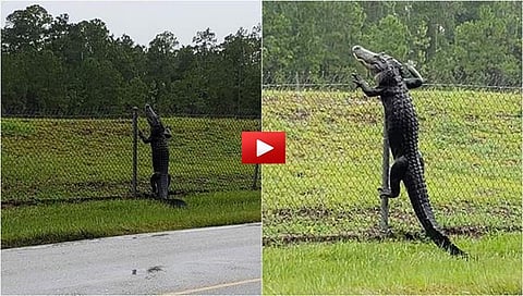 ವಾಷಿಂಗ್ಟನ್: ಉತ್ತರ ಕರ್ನಾಟಕದಲ್ಲಿ ಪ್ರವಾಹವಾಗಿದ್ದಾಗ ಮನೆಗಳ ಹತ್ತಿರ ದೈತ್ಯಕಾರ ಮೊಸಳೆಗಳು ಬಂದಿದ್ದು ಸ್ಥಳೀಯರ ಆತಂಕಕ್ಕೆ ಕಾರಣವಾಗಿತ್ತು. ಅದೇ ರೀತಿ ಇಲ್ಲೊಂದು ಮೊಸಳೆ 7 ಅಡಿ ಎತ್ತರದ ಕಾಂಪೌಂಡ್ ಬೇಲಿ ಹತ್ತಿ ಹೋಗಿರುವ ವಿಡಿಯೋ ಇದೀಗ ಸಾಮಾಜಿಕಾ ಜಾಲತಾಣದಲ್ಲಿ ವೈರಲ್ ಆಗಿದೆ.