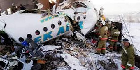 ಕಜಕಿಸ್ಥಾನದ ಅಲ್ಮಾಟಿ ನಗರದ ಬಳಿ ವಿಮಾನ ಪತನಗೊಂಡು ಸುಮಾರು 14 ಮಂದಿ ಪ್ರಯಾಣಿಕರು ಅಸುನೀಗಿದ್ದಾರೆ. ವಿಮಾನದಲ್ಲಿ 95 ಮಂದಿ ಪ್ರಯಾಣಿಕರು ಹಾಗೂ 5 ಜನ ಸಿಬ್ಬಂದಿ ಪ್ರಯಾಣಿಸುತ್ತಿದ್ದರು ಎಂದು ತಿಳಿದುಬಂದಿದೆ. ಮೂಲಗಳ ಪ್ರಕಾರ ಪತನಕ್ಕೀಡಾದ ವಿಮಾನವು ರಾಜಧಾನಿ ನೂರ್-ಸುಲ್ತಾನ್ಗೆ ಹಾರಾಟ ನಡೆಸುತ್ತಿತ್ತು. ಟೇಕ್ ಆಫ್ ಆದ ಕೆಲವೇ ನಿಮಿಷಗಳಲ್ಲಿ ವೇಳೆ ಕಟ್ಟಡವೊಂದಕ್ಕೆ ಡಿಕ್ಕಿ ಹೊಡೆದಿದೆ ಎಂದು ಅಧಿಕಾರಿಗಳು ತಿಳಿಸಿದ್ದಾರೆ.