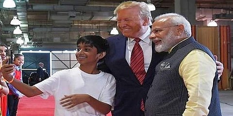 ಹ್ಯೂಸ್ಟನ್: ಹೌಡಿ ಮೋದಿ ಕಾರ್ಯಕ್ರಮ ಜಾಗತಿಕ ಮಟ್ಟದಲ್ಲಿ ಸದ್ದು ಮಾಡಿದಂತೆಯೇ ಕಾರ್ಯಕ್ರಮದಲ್ಲಿ ಬಾಲಕನೋರ್ವ ಡೊನಾಲ್ಡ್ ಟ್ರಂಪ್-ಮೋದಿ ಜೊತೆ ಸೆಲ್ಫಿ ಕ್ಲಿಕ್ಕಿಸಿಕೊಂಡಿದ್ದೂ ಸಹ ಸಾಮಾಜಿಕ ಜಾಲತಾಣಗಳಲ್ಲಿ ಭಾರಿ ಸದ್ದು ಮಾಡುತ್ತಿದೆ.